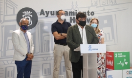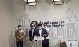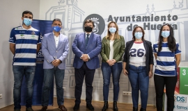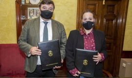 El alcalde de Huelva, Gabriel Cruz; y la presidenta del Club Recreativo Bádminton IES La Orden, María Eugenia Lorenzo; han firmado hoy un convenio de colaboración con el que el Ayuntamiento de la c