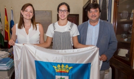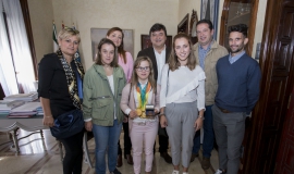 El alcalde de Huelva, Gabriel Cruz, junto a la Concejala de Participación Ciudadana y Deporte, María Teresa Flores, ha recibido esta mañana en el Ayuntam