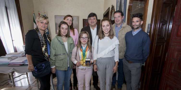 El alcalde de Huelva, Gabriel Cruz; acompañado de la concejala de Participación Ciudadana y Deportes, María Teresa Flores, ha recibido en el Ayuntamiento de la capital a la deportista Blanca Betanzos, atleta del Club Onubense de Deportes Adaptado (CODA) que ha conseguido un excelente palmarés en los INAS Global Games, los campeonatos mundiales que se han celebrado recientemente en Australia.