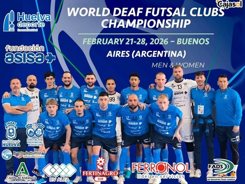 El Club Deportivo Sordos Huelva participará en el DIFA World Deaf Futsal Clubs Championship, que se celebrará del 21 al 28 de febrero de 2026 en Buenos Aires (Argentina). La cita internacional reunirá a los mejores clubes masculinos y femeninos del mundo en una semana de máxima competición y convivencia deportiva.