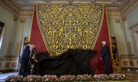 El alcalde de Huelva, Gabriel Cruz; el teniente alcalde de Cultura del Ayuntamiento de Huelva, Daniel Mantero; y el presidente del Consejo de Hermandades y Cofradías de Huelva, Antonio González, ha