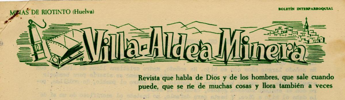 Notas: Irregular. Tít. tomado de la cabecera. Mecanografiado. Descripción basada en: n. 1 (30 ag. 1959). A partir del n. 62 (4 dic. 1960) tít.: Villa Aldea Minera. Variaciones en el subtít.: Boletín parroquial ; Boletín interparroquial. A partir del n. 51 (18 sep. 1960) se edita en Minas de Ríotinto. Errores en la numeración.