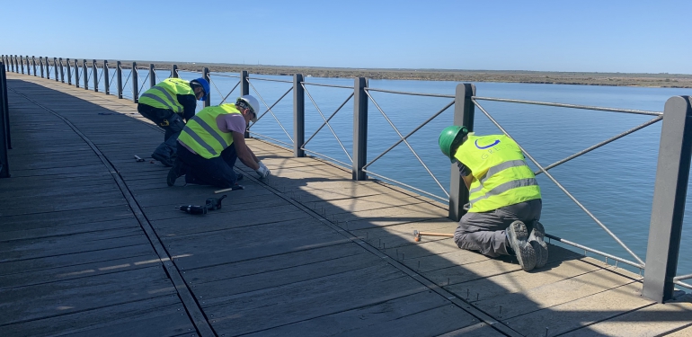 El Ayuntamiento de Huelva, desde la Concejalía de Hábitat Urbano e Infraestructuras, ha comenzado esta semana los trabajos necesarios para iluminar el Muelle del Tinto de manera ornamental. Una tarea que implica la instalación de hasta 700 proyectores, que han sido diseñados y fabricados especialmente para realzar la arquitectura de este monumento emblemático de la ciudad.