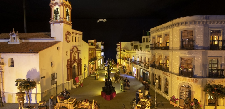 El Ayuntamiento de Huelva ha confiado un año más en Antonio Quiñones, “un artista arraigado a su tierra, con enorme talento en diferentes facetas, que dibuja un panorama de la Huelva Antigua, en pleno corazón de la ciudad, un espacio que todos los onubenses reconocemos, recreando cada detalle desde el cariño que siente por Huelva y el respeto más absoluto a lo que significa el Belén”.