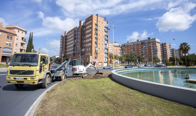 Esta semana han comenzado las obras para reformar la imagen de la rotonda de la Fuente de La Música. La retirada de los dispositivos de riego y a continuación, de las capas de césped, han centrado los primeros trabajos de una actuación que cuenta con un plazo de ejecución aproximado de un mes. El objetivo, como ya adelantó el concejal de Infraestructura y Servicios Públicos del Ayuntamiento de Huelva, Luis Albillo, en la presentación del proyecto, es renovar por completo la zona verde que rodea la infraestructura hídrica situada en el cruce de la Avenida de Andalucía con la calle Honduras para “mejorar la calidad ornamental y estética de un espacio muy llamativo, situado a la entrada de Huelva, que es difícil de mantener en óptimas condiciones debido al daño que produce el agua clorada sobre la vegetación”.