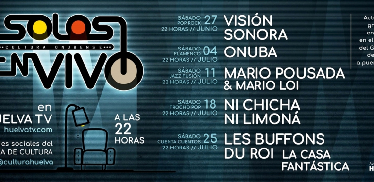 Estando cubierta la programación hasta el sábado 20 de junio, las nuevas propuestas comenzarán a emitirse a partir del 27 de junio, cuando tomará el relevo el pop rock de la mítica banda onubense Visión Sonora. Onuba, otro clásico del plantel artístico onubense, se suma a esta iniciativa para apostar por nuestro flamenco el 4 de julio. El concierto de Mario Pousada y Mario Loi se emitirá el 11 de julio, cambiando al jazz fusión; mientras que el denominado trocho pop que caracteriza a Ni chicha ni Limoná llegará a las pantallas onubenses el 18 de junio; poniéndose el broche final a esta nueva remesa, con un cuentacuentos, a cargo de Les Buffons Du Roi que presentan La Casa Fantástica.