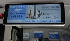 Durante esta semana, coincidiendo con las celebraciones del 12 de octubre, todos los autobuses de Emtusa proyectarán las imágenes del acto de inauguración del Monumento