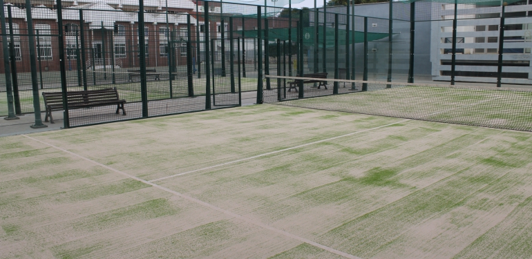 En la rehabilitación del suelo de las pistas se ha utilizado un césped artificial de gran calidad para garantizar un juego lento y favorecer la amortiguación, reduciendo de esta manera el riesgo de lesiones para los jugadores. Además, la arena de sílice empleada en su instalación facilita el agarre de las zapatillas evitando resbalar y proporcionando un deslizamiento adecuado, además en cuanto al bote de la pelota, provoca que sea más regular, aportándole una mayor consistencia.