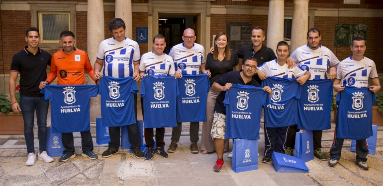 La concejala de Participación Ciudadana y Deportes, María Teresa Flores, ha recibido hoy en el Ayuntamiento de Huelva al equipo de la Asociación Onubense para la Normalización Educativa Social y Laboral (Aones) que va a participar en el ‘IX Campeonato Nacional de Fútbol 7 Inclusivo’, que se celebrará en Albacete del 26 al 29 de septiembre.