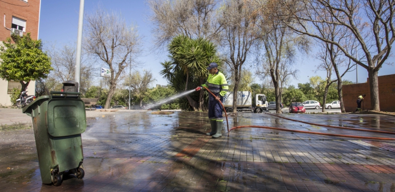 En cada una de las barriadas las tareas extraordinarias contempladas en el dispositivo incluyen la eliminación con medios manuales y mecánicos de malas hierbas y la aplicación de fungicidas naturales para limitar su crecimiento futuro; el baldeo mecánico y fregado con cisternas, previa aplicación de líquidos desengrasantes y limpiadores aplicados con escobillón en manchas de acerados, esquinas, fuentes, papeleras, farolas y bancos; fregado de entornos de islas de contenedores y elementos de mobiliario urbano; y eliminación de grafitis, pegatinas, chicles y residuos en fachadas de edificios públicos y elementos urbanos.