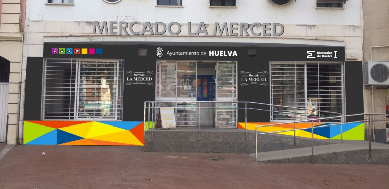 Partiendo de la tradición de un enclave que tiene su origen en 1957, el Ayuntamiento ha apostado por un diseño que, respetando la imagen y los colores corporativos de los mercados de Huelva, aporta una imagen actual y dinámica, donde lo principal es mostrar la calidad de los productos y el servicio de unas instalaciones destinadas a convertirse en espacio generador de empleo y riqueza. Desde la propia entrada del edificio, hasta su interior, se ha integrado en un proyecto muy visual, donde se alternan fotografías antiguas y en blanco y negro, con mensajes serigrafiados, mientras el color se utiliza para identificar las distintas temáticas y llamar la atención. Actualmente, se compagina la instalación de vinilos y material de decoración con labores de pintura, para sanear y reparar grietas e imperfecciones, ofreciendo un nuevo aspecto a los pasillos y las distintas estancias.