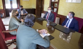 El alcalde de Huelva, Gabriel Cruz, ha recibido hoy en el Ayuntamiento al director general de Ferrovial Servicios, Juan Ignacio Beltrán; al consejero delegado de esta filial de la empresa, Fidel L