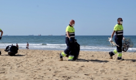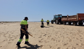 A lo largo de la jornada de hoy, el Ayuntamiento de Huelva está acometiendo una limpieza de choque en la playa del Espigón, que está llevando a cabo la Concejalía de Hábitat Urbano e Infraestructur