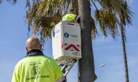 El Ayuntamiento de Huelva está desarrollando una campaña preventiva anti-roedores consistente en la instalación de barreras físicas sobre las palmeras de la ciudad.