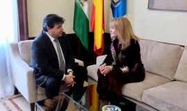 El alcalde de Huelva, Gabriel Cruz, ha recibido hoy en el Ayuntamiento a la nueva presidenta de la Autoridad Portuaria, Pilar Miranda, con quien ha mantenido un primer