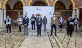 El alcalde de Huelva, Gabriel Cruz, ha presidido hoy en el Salón de Plenos municipal el acto de entrega de los Premios al Comercio de Huelva 2020, una iniciativa impulsada por el Ayuntamiento en co