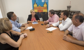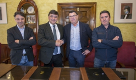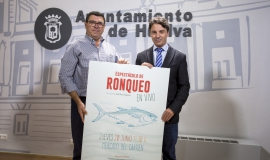 El alcalde de Huelva, Gabriel Cruz; acompañado por el concejal de Empleo, Desarrollo Económico y Proyectos, responsable de Comercio, Jesús Manuel Bueno; ha firmado un c