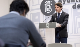 El alcalde de Huelva, Gabriel Cruz, acompañado por el concejal de Empleo, Desarrollo Económico y Proyectos del Ayuntamiento de Huelva, Jesús Manuel Bueno, ha mantenido