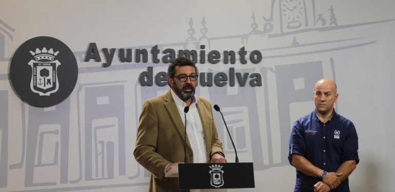El concejal de Movilidad y Seguridad Ciudadana del Ayuntamiento de Huelva, Luis Albillo; y el presidente de la Asociación Bomberos Unidos Sin Fronteras (BUSF), Antonio Nogales, han dado a conocer esta mañana en rueda de prensa el plan de trabajo puesto en marcha por el Consistorio para la elaboración de un Plan de Contingencia Municipal contra Tsunamis, que se incorporará al Plan de Emergencias Local.