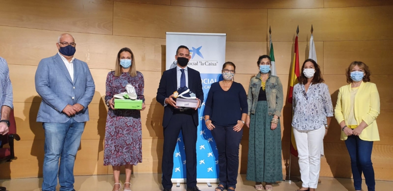 En el marco de la campaña destinada a mejorar la calidad de vida de las familias onubenses que se encuentran en situación de mayor vulnerabilidad, el Ayuntamiento de Huelva y CaixaBank han hecho entrega esta mañana de un total de 1.044 pares de zapatos nuevos a entidades de la ciudad como Cáritas, la Ciudad de los Niños, la Asociación Juvenil Carabela, la Asociación 1972 de Protección de la Infancia, el Ropero Social de Huelva y la Hermandad del Nazareno.