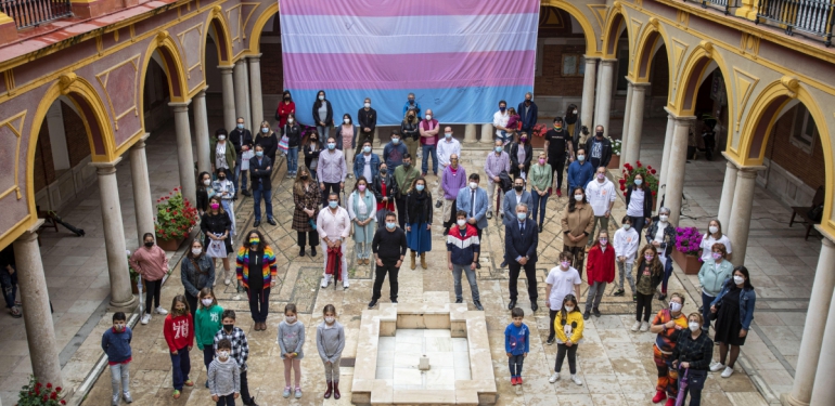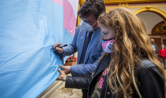 Así, el patio consistorial ha acogido el despliegue de la bandera trans que está recorriendo toda la geografía española para dar a conocer esta acción reivindicativa del colectivo, en un acto en el que se han compartido testimonios trans y han estado presentes, acompañando al regidor, la concejala de Políticas Sociales e Igualdad, María José Pulido; el concejal de Empleo, Desarrollo Económico y Planificación Estratégica, Jesús Manuel Bueno; y la concejala de Comercio y Mercados, Tania González; y la concejala de Vivienda, Leonor Romero; además de ediles del PP, Ciudadanos, Mesa de la Ría y Adelante Huelva, entre otros representantes institucionales.