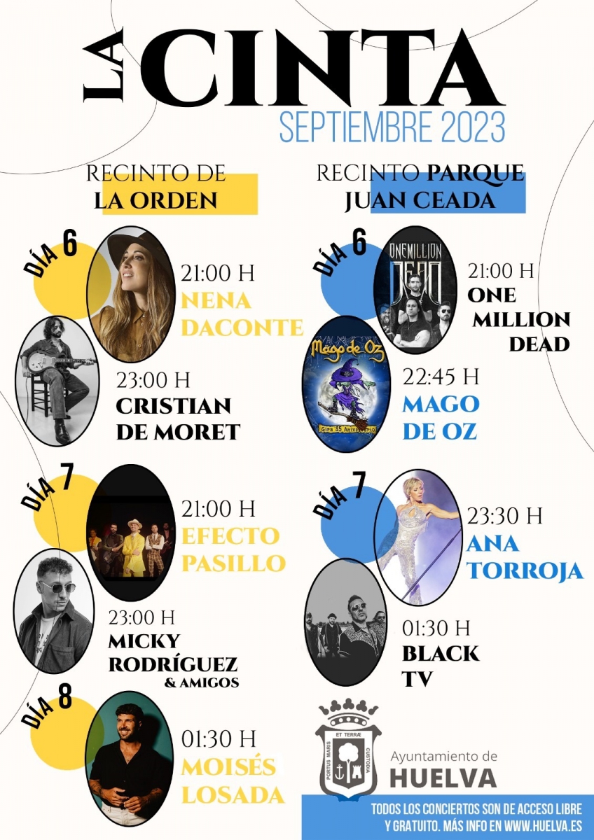 Tras la finalizar la misa, en torno a las 6.30 horas, la Patrona bajará de su Santuario destino a la Iglesia de La Concepción, al encontrarse en obras la Plaza de la Merced. El traslado discurrirá por la Avenida de La Cinta, Avenida de Santa Marta, Avenida de San Antonio, Avenida Manuel Siurot, calle San Andrés, Plaza San Pedro, Paseo Santa Fe, Méndez Núñez y Parroquia de la Concepción. Se espera que alcance este último punto sobre las 12:30 horas debido a que el recorrido de este año tiene alrededor de un kilómetro más que el tradicional.