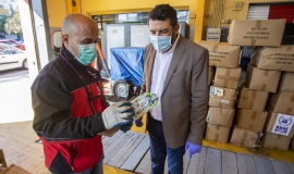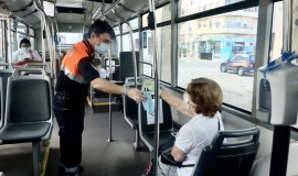 El Ayuntamiento de Huelva, a través de un dispositivo especial de Protección Civil, ha empezado a distribuir hoy las 13.500 mascarillas suministradas por el Gobierno central a los usuarios del tran