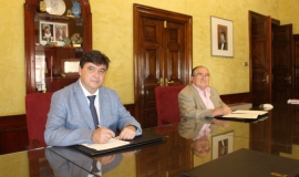 El alcalde de Huelva, Gabriel Cruz, y el presidente del Banco de Alimentos de Huelva, Juan Manuel Díaz, han suscrito un convenio de colaboración por el cual, el Ayuntamiento de Huelva aporta un tot