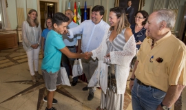 El alcalde de Huelva, Gabriel Cruz, acompañado por la primera teniente de alcalde de Economía, Presidencia y Relaciones Institucionales del Ayuntamiento de Huelva, María Villadeamigo, y de la conce